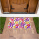 Paillasson Fleur rétro, lumineux rétro, floral, rouge et jaun