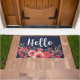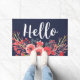 La guirlande florale d'aquarelle rose de fantaisie et l'arrière - plan foncé de bleu marine comportant une main ont marqué avec des lettres le blanc "bonjour" en manuscrit. Cette natte crie l'amusement plus la féminité et ferait une grande impression sur vos invités de maison pendant qu'ils sont bien accueillis à votre maison !