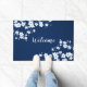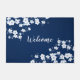 Paillasson Floral Cerisier Fleurs Marine Bleu Blanc Bienvenue