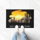 Flûte Sud-Ouest Jouant Kokopelli Tapis Porte. Combinaison de couleurs que vous pouvez customiser des couleurs arrière - plans pour correspondre à votre décor. Kokopelli dans un paysage désertique au milieu des sahuaros. Les cultures amérindiennes. Attribué à des aliens anciens ou à l'art tribal et inspiré de dessins rupestres et rupestres. Customisez vos couleurs et styles de tapis de porte de style sud-ouest Amérindien. Super idée cadeau.