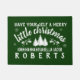 Le joli regard de ferme d'hiver - toile de jute foncée élégante de faux de vert forêt - le classique texte "ont vous-même Joyeux petit Noël" avec les pins, le houx, les flocons de neige, et votre nom de famille