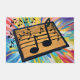 Un paillasson marron avec des notes musicales noires peint dessus, entouré d'un arrière - plan abstrait coloré. Bienvenue à vos proches dans le style avec ceci - Amuse notes de musique colorées Design For Your Feet Before Enter Doormat.