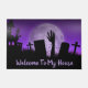 Ce tapis de porte Halloween est montré avec une empreinte éffrayante zombie à la main. Customisez cet objet ou achetez tel quel. Image stock freepik.com