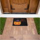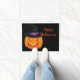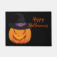 Le tapis de porte d'Halloween est affiché en noir avec une empreinte sorcière citrouille festive. Customisez ce tapis ou achetez tel quel. Image stock