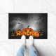 Le tapis de porte d'Halloween est affiché avec une impression citrouille éffrayante. Customisez ce tapis ou achetez tel quel.