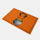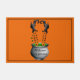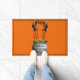 Le mat de porte d'Halloween est montré avec une sorcière dans un pot bouillonnant imprimé sur une couleur arrière - plan orange. Customisez ce tapis ou achetez tel quel.