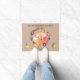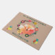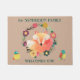C'est un tapis de porte mignon qui comporte une image de style de boho d'un petit renard de sommeil dans une guirlande florale colorée. À chaque fond le coin est un petit oiseau brillamment coloré qui regarde le renard. Au dessus et au bas de l'image est votre texte fait sur commande en assortissant le vert turquoise. L'image et le texte sont placés sur un fond bronzage clair pour les faire vraiment se tenir ! Là assortissent des produits de ménage avec cette conception dans notre magasin.