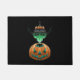 Halloween Horror Punk pop culture imaginaire art Frankenstein vert zombie monster avec Jack o Lanterns, citrouilles, et chat noir portant un masque crâne.