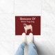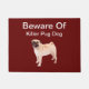 Un drôle de tapis de bienvenue familial avec un chien Carlin graphique et humoristique avertissant de chien dangereux d'une façon humoristique d'accueillir les invités de maison à votre maison.