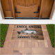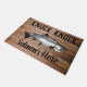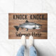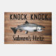 Un drôle de tapis de bienvenue de pêche saumon avec un drôle de jeu de mots. Frappez Frapper Saumon Ici.