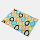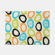 Un motif de formes colorées qui ressemblent à des rochers composent ce design d'art abstrait inspiré de l'ère atomique des années 1950. Les couleurs sont chartreuse, orange, bleu ciel et noir.