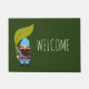 Un tapis d'accueil à thème génome de jardin amusant avec un gnome de jardin avec une feuille personnalisable arrière - plan de couleur avec signe de bienvenue. Un jardin chaleureux et coloré art bon chi tapis de porte d'accueil parfait pour votre maison.