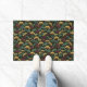 Ginkgo Leaf Pattern Teal Burgundy Design. This doormat features the popular ginkgo leaf motif in rich jewel tones of teal, burgundy and gold on an off-black background. A luxurious design with a dark, moody vintage feel.