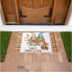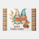 Le mat de porte d'entrée sur le thème Thanksgiving mignon comporte une paire de gnomes tenant citrouille et tarte avec arrière - plan plaid couleur automne.