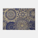 Elégante fantaisie, unique faux or parties scintillant de collection mandalas tribales design, henné girly floral indien, rempli de points, formes géométriques, lignes, rayures, triangles, cercle de fleurs, or jaune, points lumineux, image mystique abstraite, sur un arrière - plan bleu marine. Un décor mystique, aztèque, lux, illustration bleu marine et doré, imprimé d'image.