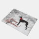 Silhouette Greyhound avec arc et texte "Joyeux Noël !" sur un arrière - plan d'hiver.