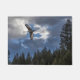 Une belle grue de Sandhill en vol au-dessus des arbres.