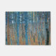Il s'agit d'oeuvres de Gustav Klimt, Beech Grove 1, 1902. Les oeuvres d'art dépeignent une forêt dense de grands bouleaux, minces, aux troncs pâles marqués par des lignes verticales foncées. Le feuillage est dépeint dans les tons bleu, vert et jaune, ajoutant un sens de profondeur et de vibrations à la scène. Le sol de la forêt est recouvert d'une couche de feuilles orange et marron, créant un contraste saisissant avec les tronçons d'arbres plus légers. La composition globale utilise des techniques pointillistes et impressionnistes, donnant à l'image une apparence vivante et texturée. La verticalité des arbres souligne la structure sereine et rythmique de la forêt.