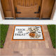 Ce mignon tapis de porte personnalisé Halloween présente un adorable chiot dalmate avec des chauves-souris et un citrouille Jack-o'-lantern avec une bordure assortie de noir et orange. Personnalisez avec votre choix de message de vacances. Amusant pour votre décor de fête de vacances.