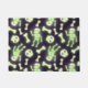 Dessins d'un mignon squelette éffrayant, d'os et de crânes qui ressemblent à une lueur verdâtre dans la couleur foncée sur un arrière - plan noir violet foncé et des étoiles violettes dans leurs yeux. Elles sont disposées dans un motif d'halloween non-directionnel tout-en-un. Veuillez noter que cette impression ne brille pas vraiment dans le noir, c'est juste une oeuvre que j'ai faite pour ressembler à la lueur dans le noir.