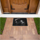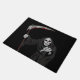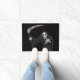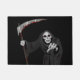 Tapis de porte montré avec un arrière - plan noir et une presse à papier Halloween grim. Customisez ce tapis ou achetez tel quel.