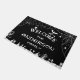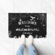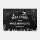 Paillasson personnalisé d'Halloween noir et blanc avec des toiles d'araignée, des arbres effrayants, des chauves-souris et des fantômes.