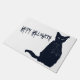 NewParkLane - Tapis de porte d'Halloween, avec une silhouette noire et blanche illustrant un chat noir fixant éffrayant, et "Happy Halloween" en typographie effrayante. Consultez cette collection Halloween pour les articles correspondants. Avez-vous des souhaits particuliers en matière de design personnel? Ou voulez-vous que ce design soit réalisé sur un produit qui ne fait pas partie de cette collection ? N'hésitez pas à me contacter, et je me ferai un plaisir de vous le faire gratuitement !
