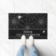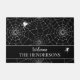 Tapis éffrayant de porte d'Halloween noir et blanc avec araignées et toiles de cobaye. Tout le texte est personnalisable pour que vous puissiez ajouter votre propre message et nom de famille