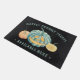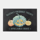 Laissez les astuces ou les traiteurs allergiques savoir que votre maison est un incontournable avec ce tapis de porte sucré. Design propose un citrouille Jack-o'-lantern turquoise souriant flanqué de petites gourdes, avec "friandises allergiques disponibles ici" en lettres turquoises.