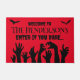 Cassez une entrée éffrayante cet Halloween avec ce tapis rouge à mains et chauves-souris zombies déplaisantes, et le texte ENTRER SI VOUS Osez. Tout le texte est personnalisable pour que vous puissiez ajouter votre propre message et nom de famille