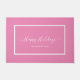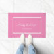 Tapis de porte moderne Happy Holidays avec un script blanc sur un arrière - plan rose. Personnalisez avec votre nom de famille ou votre texte.