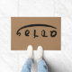un ambigramme du mot anglais "hello" et le mot espagnol "adios" pour un tapis de portes qui se lit de part et d'autre. un tapis de portes à deux sens.