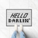 Salut Darlin ! Qui n'adorerait pas revenir à la maison avec ce joli tapis de portes de conception de faux tuiles! ? Ceci est un tapis imprimé qui dit "Hello Darlin" dans un motif rétro en tuiles hexadécimales.