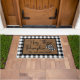 Doormat contient les mots "Hey There Citrouille" en caractères noirs scriptés sur un arrière - plan naturel en forme de coco avec des détails citrouilles de buffle noir et blanc et une bordure de buffle noir et blanc plaid. Customisez en ajoutant votre nom de famille ou votre texte favori pour rendre ce tapis de portes unique à vous.