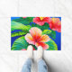 Paillasson hibiscus hawaïen fleurs rouges tropicales et vert