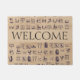 Ce tapis de bienvenue personnalisé présente un thème artistique égyptien ancien. Une série d'hiéroglyphes égyptiens sont imprimés sur un papier parchemin arrière - plan. L'accueil est imprimé au centre sur un beige sablonneux assorti.