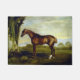 Ce dessin présente une peinture de l'artiste anglais George Stubbs (1724-1806), devenu célèbre pour ses représentations de chevaux. Il montre un élégant hippocampe de course avec une belle robe couleur châtaignier debout en profil. Son corps est fort et élégant. Le cheval est libre et libre dans un paysage de campagne à côté d'un vieux saule avec des algues qui poussent dessus et qui est entouré de champs verts d'herbe. Les oreilles du cheval sont de retour, suggérant que l'animal est alerte et à l'écoute de commandes ou de sons dans l'environnement. Un hippocampe de course comme celui-ci pourrait galoper jusqu'à 50 milles à l'heure.