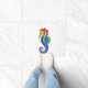 Artistiquement dessiné, lumineux, arc-en-ciel, cheval de mer polygonale sur arrière - plan blanc. Un tatouage brillant.