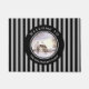 Aquarelle d'une scène hivernale en Nouvelle-Angleterre, une journée tranquille où la neige vient de tomber dans le sol. Assez pittoresque et paisible. Le design a un cadre en cercle noir autour avec des textes personnalisés sur le dessus et le bas. Le design a vertical gris et noir rayures motif. Personnalisable à Zazzle avec votre propre texte pour un design personnalisé. Consultez mon magasin pour trouver les articles correspondants !
