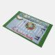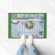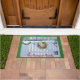 Bienvenue amis et famille dans votre maison avec ce magnifique tapis de bienvenue qui représente une scène de neige hivernale avec une clôture blanche et une belle couronne de Noël accrochée dessus. Il est bordé en vert de Noël et vous personnalisez avec votre nom ou vous pouvez le changer en "Bienvenue à notre maison".