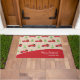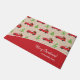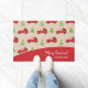 Ajoutez une touche vintage festive à votre décor de porte d'entrée de maison de vacances avec ce tapis de porte personnalisé. Mat a un motif de camion transportant des cadeaux, des arbres de Noël avec des ornements et de la neige, et le texte Joyeux Noël avec votre nom de famille et l'année sur rouge. Le texte peut être personnalisé selon vos préférences. Doormat apporte une grande touche à votre maison familiale décorations saisonnières d'hiver!