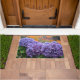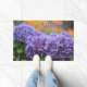 Ce beau et invitant paillasson comporte une interprétation impressionniste des fleurs pourpres d'hortensia.