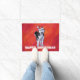Paillasson Husky à Santa Hat Sur Rouge