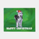 Paillasson Husky festif à Santa Hat sur Vert