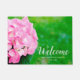 Joli tapis d'accueil d'hydrangée rose pour votre porte d'entrée. Personnalisez facilement votre nom de famille et votre année d'établissement.