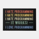 Design amusant, parfait pour toute personne qui est un programmeur, un spécialiste de la technologie, un codeur, un ingénieur informatique, un étudiant en informatique, ou quelqu'un qui aime coder! Je Déteste La Programmation. Ça marche ! I Love Programming'drôle de citation pour les programmeurs, les passionnés de technologie, les codeurs et les développeurs. Aimez-vous travailler dans le domaine de la technologie et faire partie de l'équipe technique? Accentuez votre style avec cet art cool ! Excellent cadeau pour un étudiant de l'informatique, un employé spécialiste de la technologie, un collègue de la technologie ou un professeur d'ingénierie informatique.
