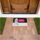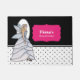 Conçu d'après mon illustration de mode d'une belle dame aux cheveux blonds portant une superbe robe élégante classique en fleurs de pétale blanche et grise. Le design comporte des pois noirs et blancs sur le fond - un paillasson chic et moderne, parfait pour votre maison ou votre entreprise. Personnalisable avec votre propre texte pour un design personnalisé.