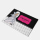 Conçu d'après mon illustration de mode d'une belle dame aux cheveux blonds portant une superbe robe élégante classique en fleurs de pétale blanche grise. Le design comporte des pois noirs et blancs sur le fond - un paillasson chic et moderne, parfait pour votre maison ou votre entreprise. Personnalisable avec votre propre texte pour un design personnalisé.