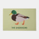 Bienvenue dans votre maison en style avec ce tapis de portes personnalisé. Il présente une illustration de style réaliste d'un canard colvert mâle en vert et brun dressé contre un arrière - plan vert pâle avec un nom ou un autre texte en coordonnant le lettrage vert.