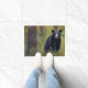 Ce tapis rustique à la maison dispose d'un ours noir dans la forêt.